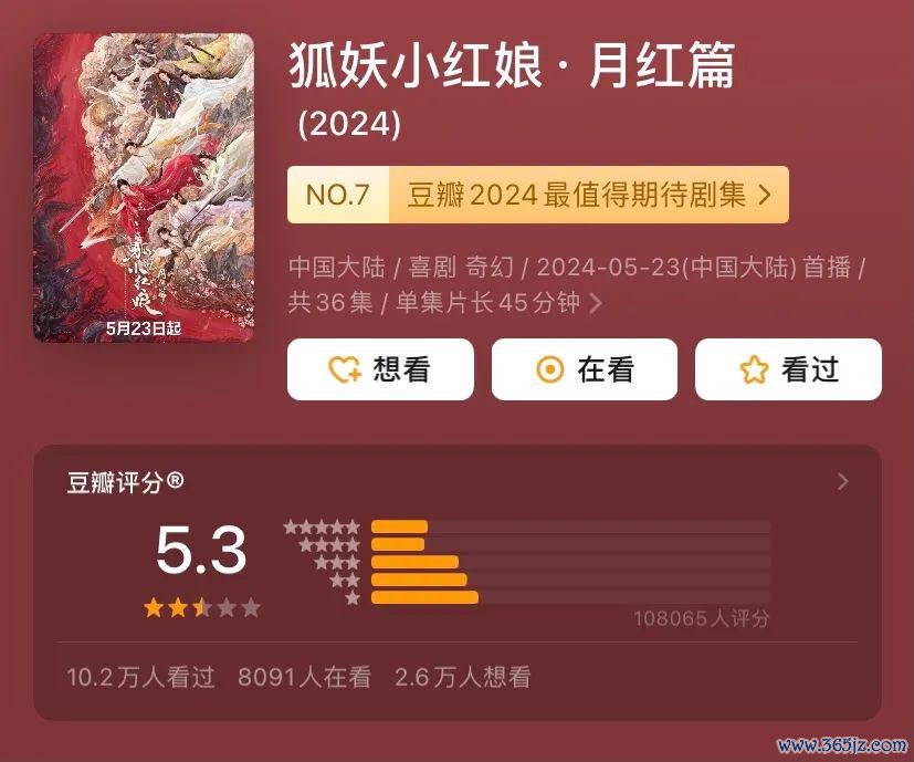 比如《狐妖小红娘月红篇》,顶级国漫IP+杨幂+龚俊的流量威望,播出后果没太洪流花,最终豆瓣唯有5.3分。《长相想2》播出后果与第一季收支甚远,豆瓣评分5.9分。